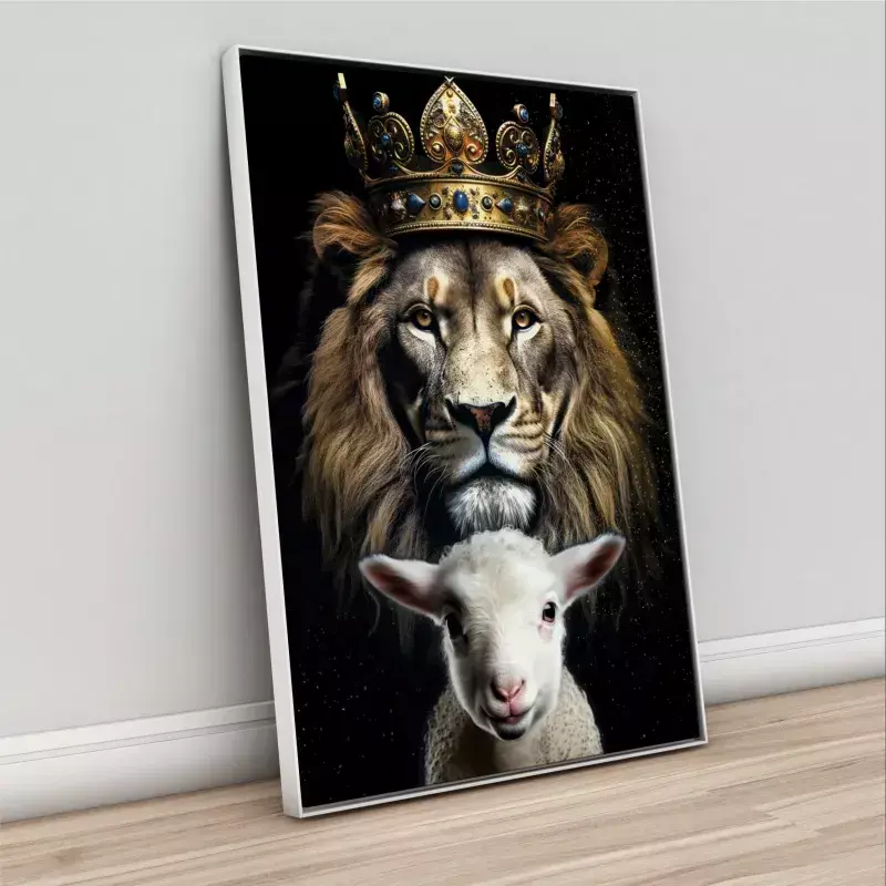 Obra imponente e inspiradora, impressa em canvas de alta qualidade, com cores vivas e detalhes nítidos que realçam cada traço. Representa o Leão de Judá, símbolo de força e realeza, junto ao Cordeiro, símbolo de paz e sacrifício, unindo poder e serenidade em perfeita harmonia. Montado em moldura de madeira resistente, é ideal para decorar ambientes com fé, elegância e significado espiritual.